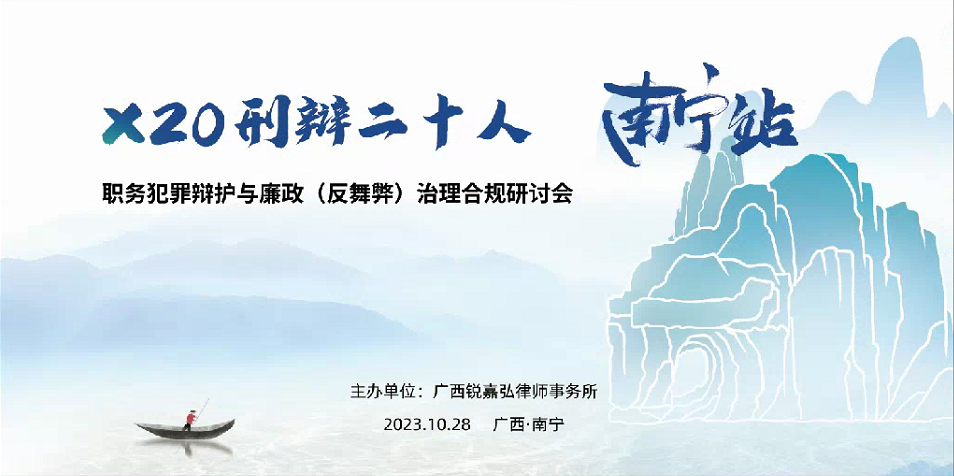 2023年10月28日,由广西锐嘉弘律师事务所主办的“X20刑辩二十人·南宁站”在南宁万丽酒店隆重召开,论坛吸引了来自全国学术界与司法实务界近三百名嘉宾、刑辩律师、企业家等人员参会。