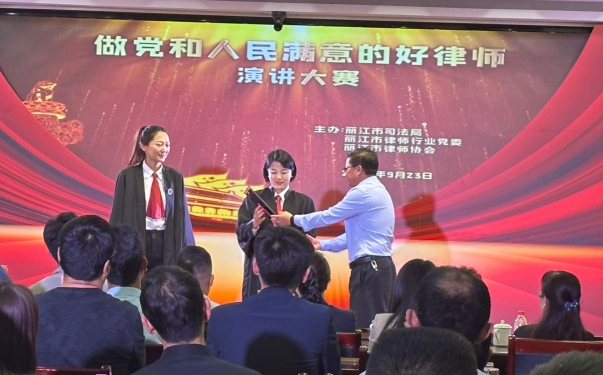 2023年9月23日,丽江市司法局、市律师行业党委、市律师协会联合举办“做党和人民满意的好律师”主题演讲比赛。凌云丽江办公室闫霖律师参加了比赛并荣获二等奖。