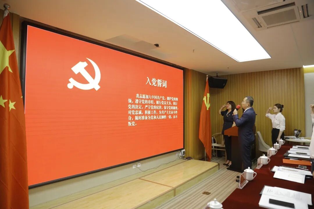 凌云所总部党群工委主席孙文杰同志带领凌云所全体党员重温了《入党誓词》,大家面对鲜红的党旗,高举右手,庄严宣誓。
