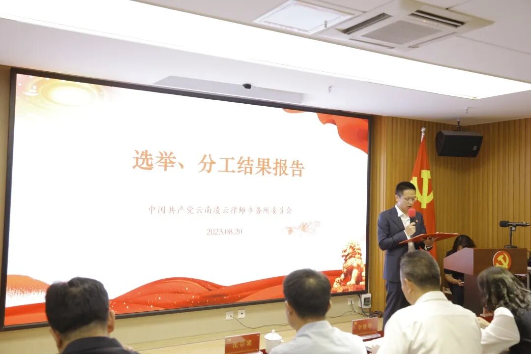 随后召开的中共云南凌云律师事务所第一届委员会第一次全体会议上,孙文杰同志当选为党委书记,张福君同志、赵雪燕同志当选为党委副书记。会议还明确了各委员分工。