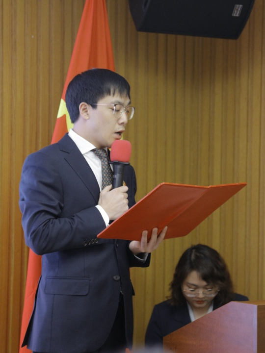 新当选为凌云律师事务所党委书记的孙文杰同志作表态发言。他表示,作为凌云所党委第一届书记,倍感荣光,同时也深感责任重大,使命在肩。凌云所党委的成立,将有力夯实律所发展政治基础,推动律所高质量前行。