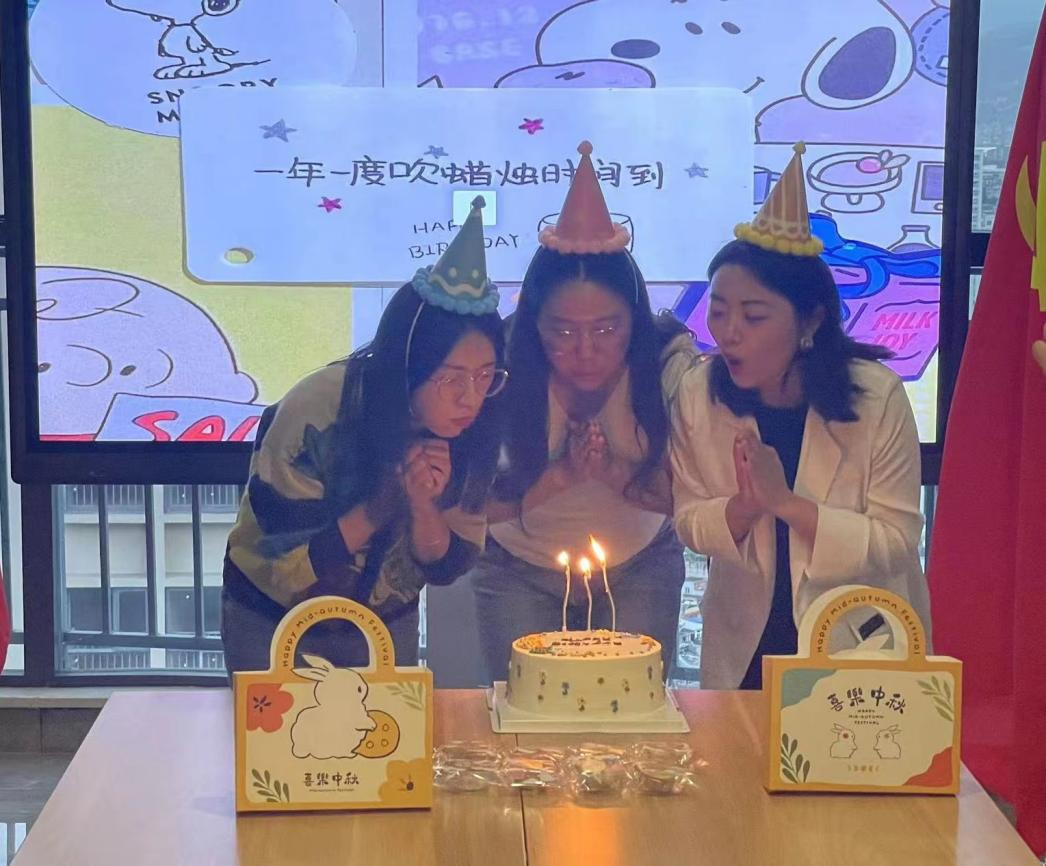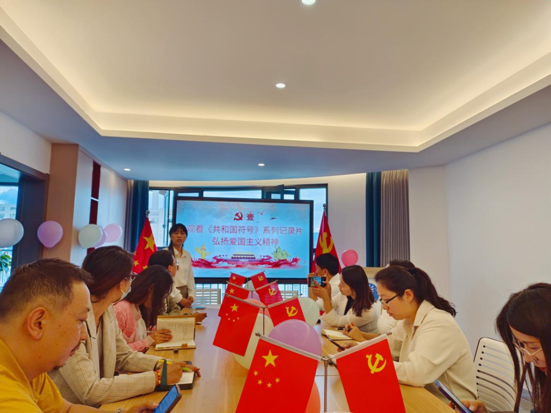 玉溪办公室党支部书记魏清萍为此次活动致辞。全体成员一起观看了《共和国符号》系列纪录片,并开展月饼制作活动及生日会。