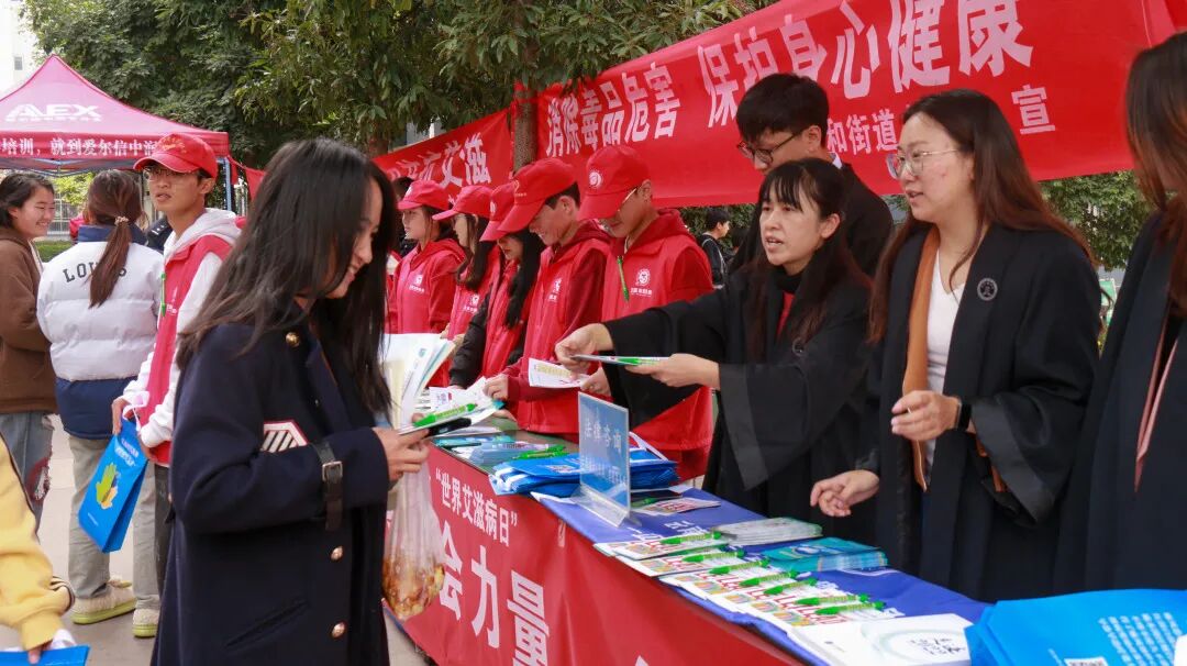 2023年11月30日,凌云(玉溪)律师事务所携手玉溪市疾病预防控制中心、红塔区疾病预防控制中心到玉溪农业职业技术学院,开展防治艾滋病宣传活动。