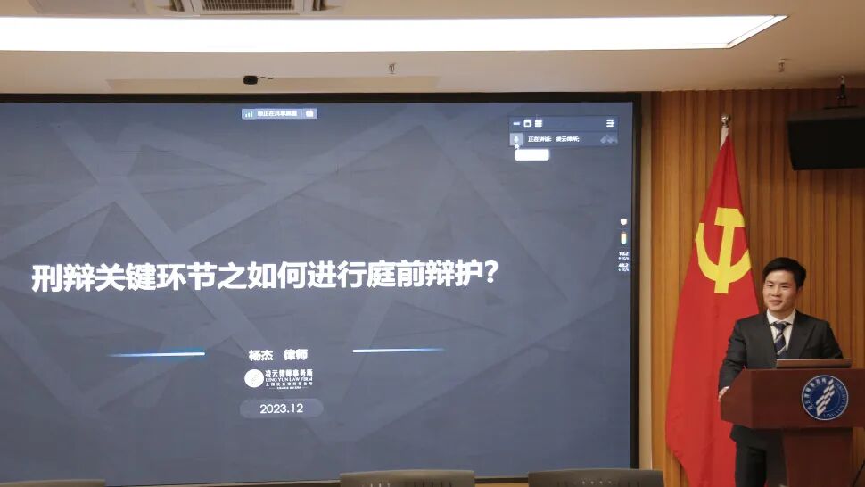 2023年12月7日,第96期凌云刑辩漫谈会,凌云律师机构昆明办公室的杨杰律师进行了题为《刑辩关键环节之如何进行庭前辩护》的分享。