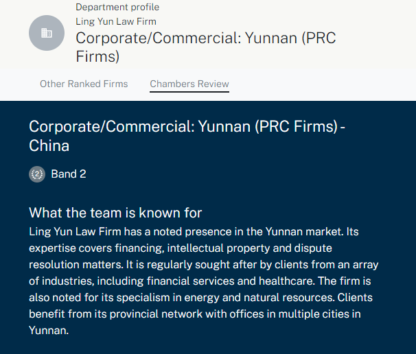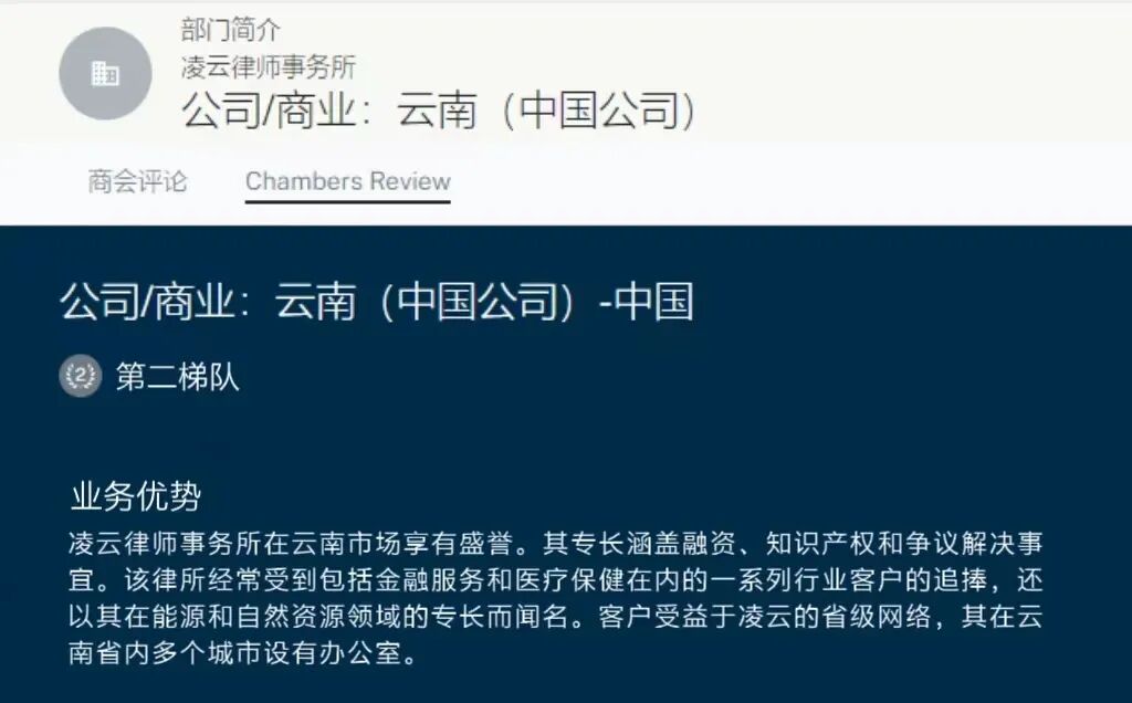 凌云律师事务所在云南市场占有一席之地。其专业知识涵盖融资、知识产权和争议解决事项。它经常受到来自一系列行业的客户的追捧,包括金融服务和医疗保健。该公司还以其在能源和自然资源方面的专长而闻名。客户受益于其在云南多个城市设有办事处的省级网络。