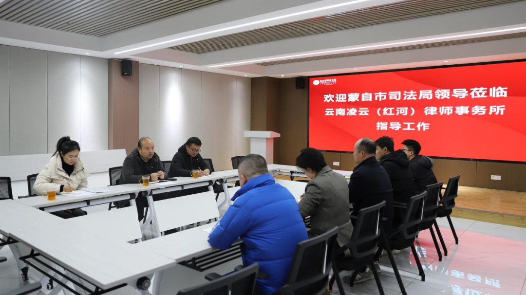 在迎接2024年“两节”“两会”之际,为确保律师队伍安全稳定,蒙自市司法局杨淇任副局长带队,李宗泽副局长、工作人员白宜灵于2024年1月25日到我所红河办公室进行走访和督导。