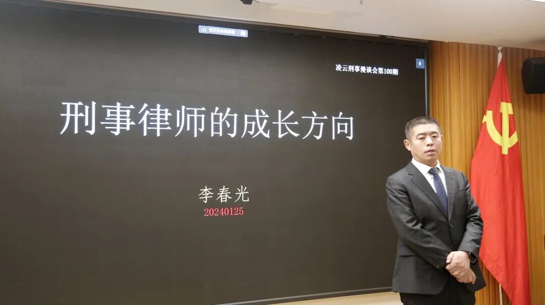 在迎来第100期凌云刑辩漫谈会之际,特邀请凌云律师事务所合伙人会议主席李春光律师为致力于从事刑事辩护的青年律师指引成长方向。