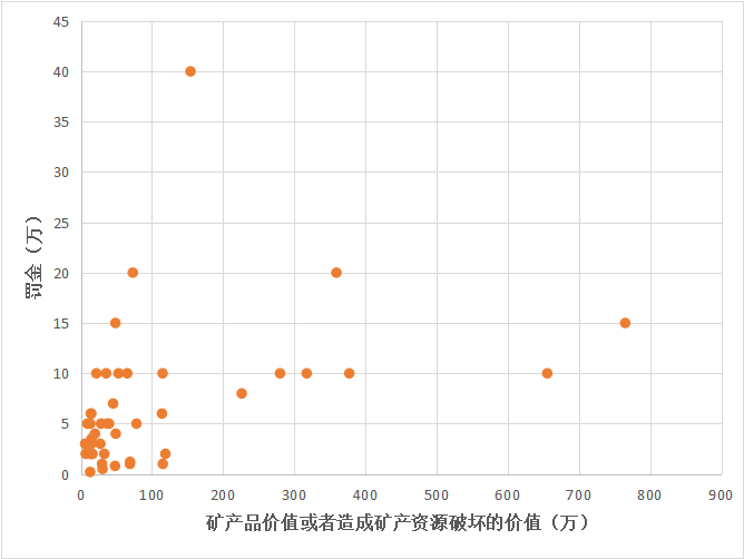 从矿产品价值或者造成矿产资源破坏的价值和罚金关系看,没有明显的规律性,涉案矿产品价值或者造成矿产资源破坏的价值高,不一定罚金就高。