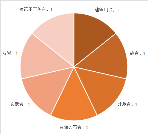 从列明具体矿产种类的判例看,涉及的矿产中,建筑用沙、砂岩、硅质岩、普通砂石岩、玄武岩、灰岩、建筑用石灰岩各1件。