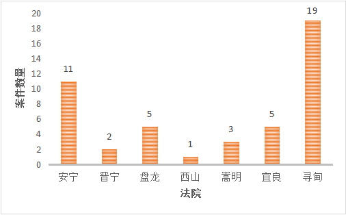 昆明所辖的14个县(区、市)中,检索到的相关判例,只有安宁、晋宁、盘龙、西山、嵩明、宜良、寻甸7个,其余7个没有检索到。寻甸、安宁的案件明显较多,共有30个判例,占了大半。从这一检索结果看,非法采矿罪在昆明地区具有较为明显的地域分布特点。