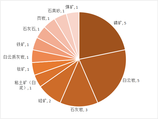 从写明具体矿产种类的案件看,所涉矿产中,磷矿、白云岩最多,石灰岩、硅、钛、铁、页岩、石英砂等有所涉及。