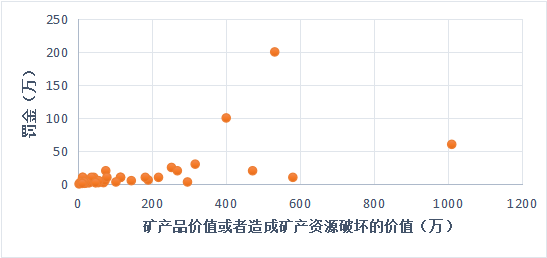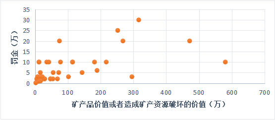 从矿产品价值或者造成矿产资源破坏的价值和罚金关系看,没有明显的规律性,涉案矿产品价值或者造成矿产资源破坏的价值高,不一定罚金就高。