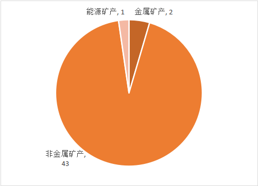 换个角度对上列矿产进行归类,昆明地区非法采矿所涉矿产绝大部分是非金属矿产,共43个案件,其中石料最为突出。此外,金属矿产和能源矿产有所涉及,主要是铁矿、钛矿和煤矿。矿产种类具有较为典型的特征。