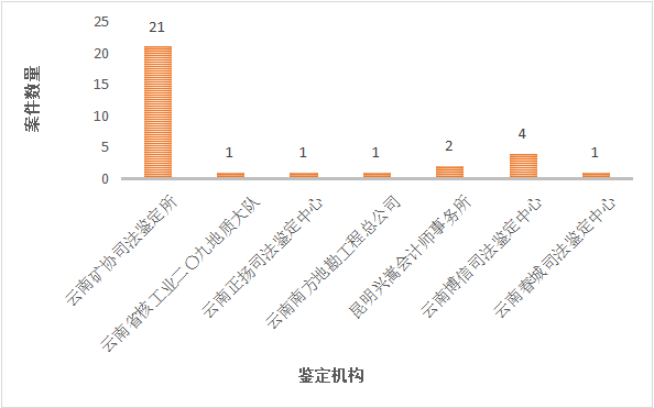 除了价格认证中心出具的鉴定,以及判决书中未明确鉴定主体的,共有31个案件在判决中明确了进行相关鉴定的鉴定机构,其中共有21个案件由云南矿协司法鉴定所进行鉴定,云南矿协司法鉴定所在昆明刑事司法矿类鉴定中具有一定的垄断地位。