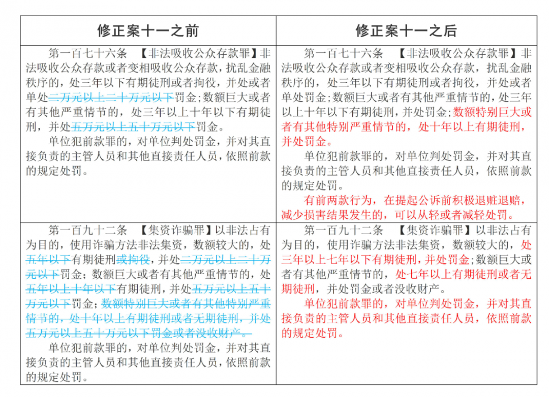 集资诈骗罪、非法吸收公众存款罪新旧条文对照