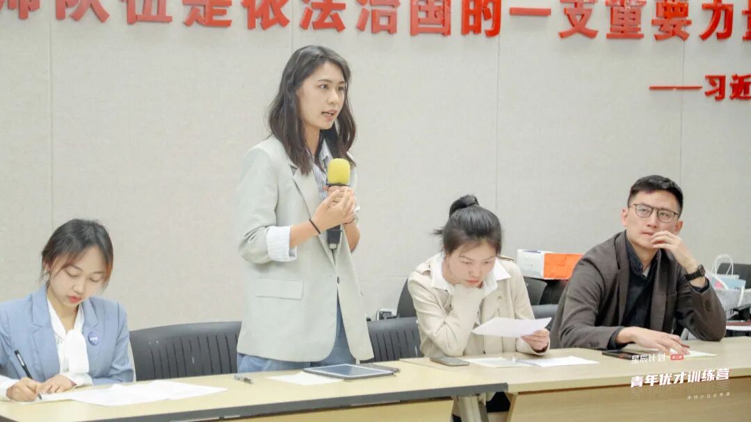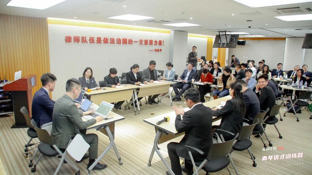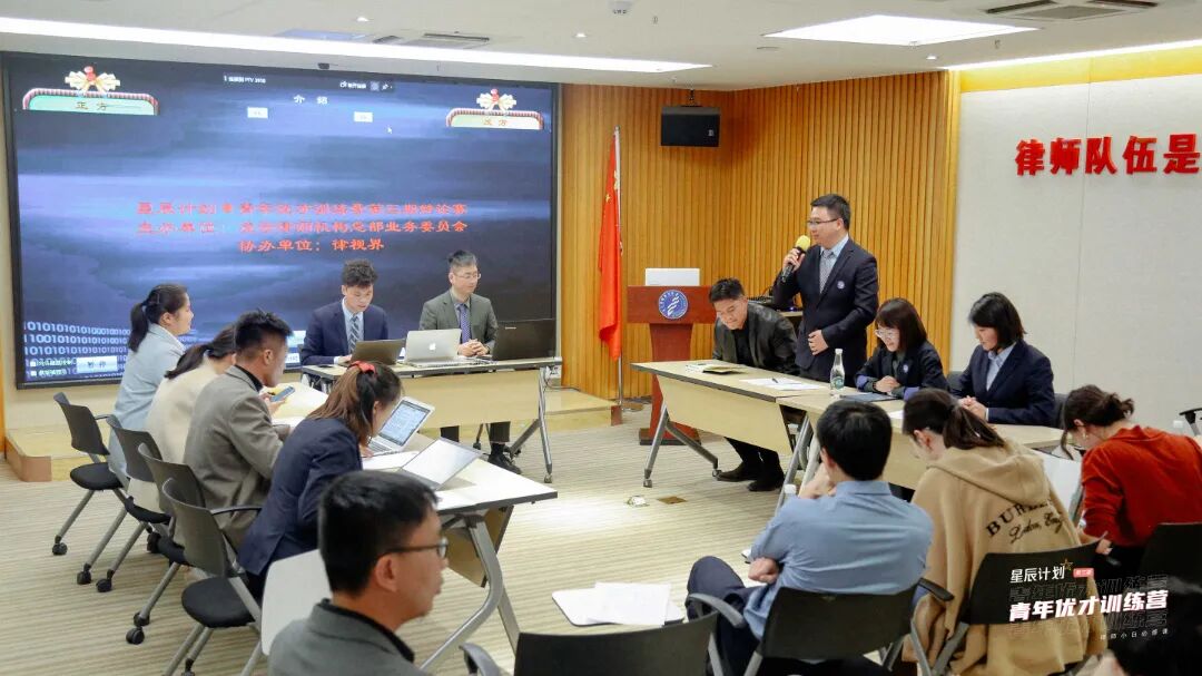 本次青训营辩论赛,由参训学员组成8支队伍参加,凌云所张与、陶冀婧、陆大博、涂国正、徐涛、吕金凤律师担任评委,为选手们破题点拨、传经送宝。刘彬、尹鹏律师担任辩论赛主席。