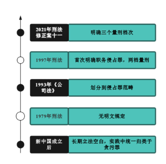 首先,赵鹏飞律师提到:新中国成立以来,伴随着非公有制经济的发展,职务侵占罪逐步确立并完善。