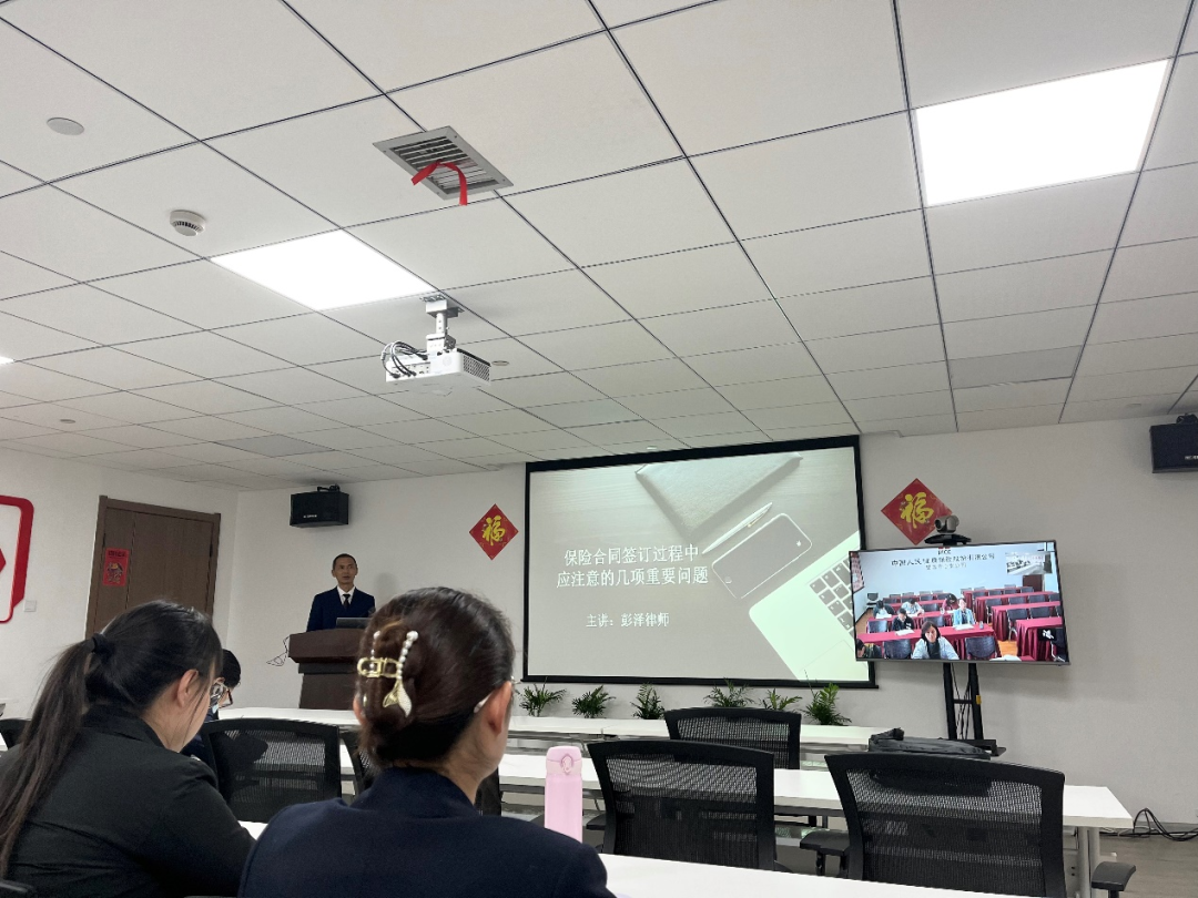 因此,为了更好地规范合同审查和防范顾问单位的法律风险,确保公司合规运营,2022年3月30日,凌云律师事务所合伙人、保险法律专业委员会主任、昆明办公室副主任彭泽律师受邀,为中国人民健康保险股份有限公司云南分公司开展《保险合同签订过程中应注意的几项重要问题》专题讲座。彭泽律师表示,希望通过此次培训,能切实提高顾问单位全体员工的合同审查能力及法律风险防范意识,努力做到以事前防范、事中控制为主,事后处理为辅的任务目标。