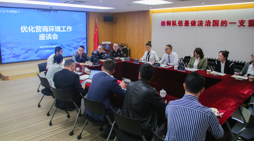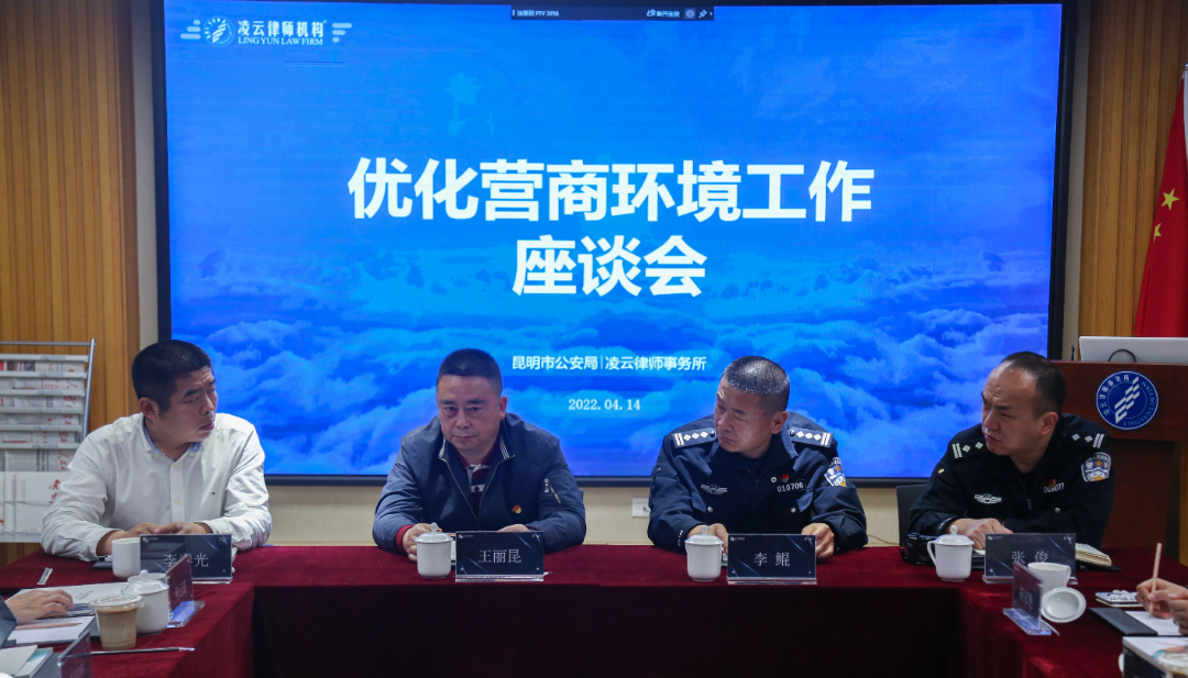 为深入推进优化营商环境工作,提升司法满意度,构建与律师的良性互动关系,服务保障全市经济高质量发展。4月14日下午,昆明市公安局警务督察支队政委王丽昆、政治处主任李鲲、维权办副主任张俊一行到凌云律师事务所进行走访调研。凌云所李春光、耿国平、胡家艳、何云波、孙文杰、杨滔、等律师参加了交流。