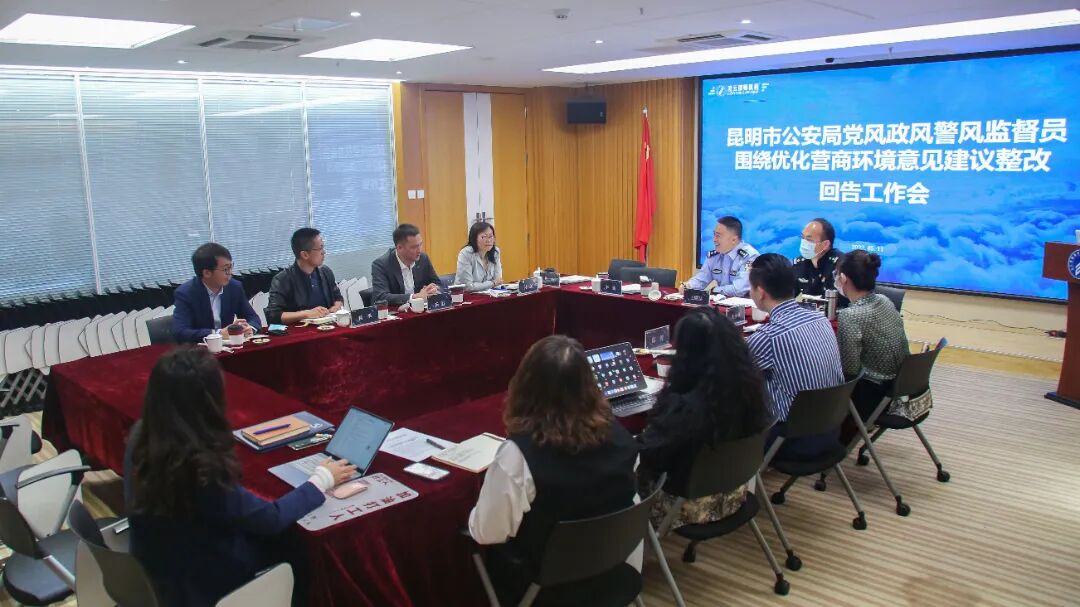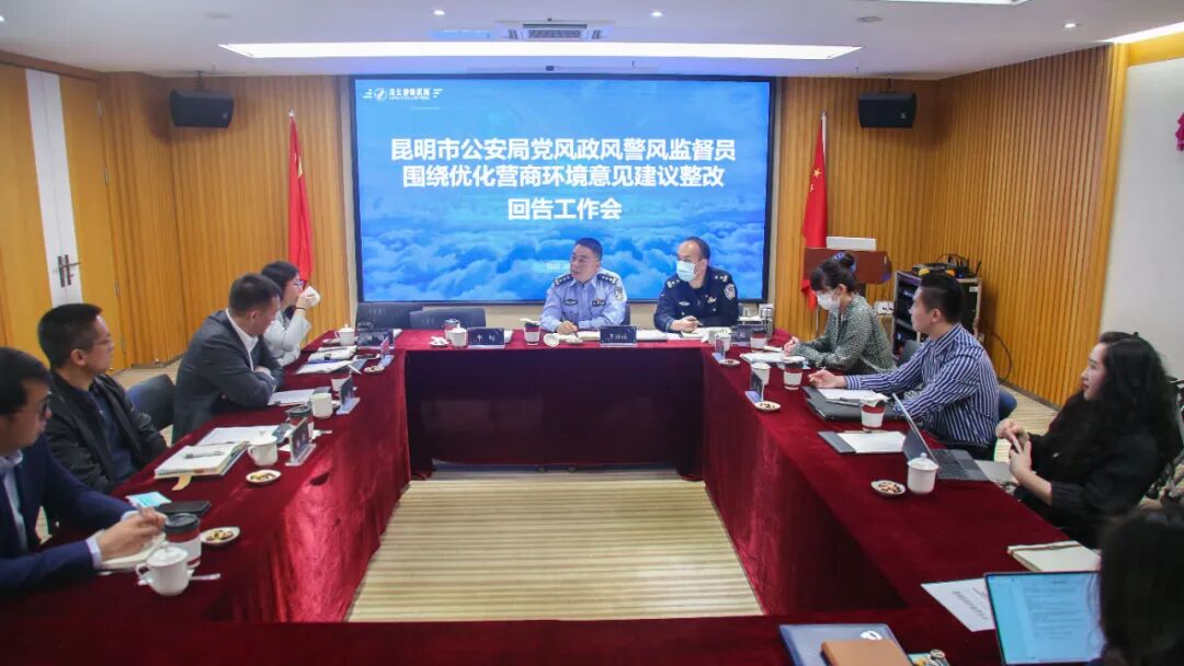 此次回告工作会主要根据由昆明市公安局党风政风警风监督员及凌云所律师关于优化营商环境提出的相关意见和建议进行了整改后的反馈工作。会议分别对优化营商环境、社会治安秩序、便民利民等方面提出的意见建议进行了解答回复,进一步掌握了律师行业对公安优化营商环境的诉求。