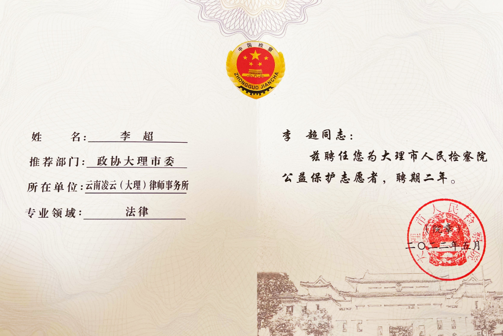 凌云·公益 | 凌云大理分所律师获聘大理市首批检察云平台志愿者