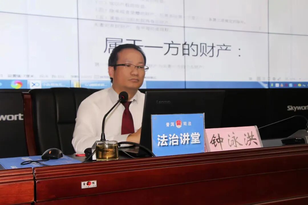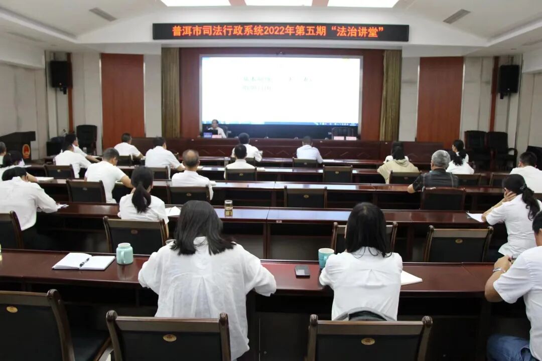 2022年6月27日下午,我所钟泳洪律师受普洱市司法局的邀请前往普洱市司法行政系统2022年“法治讲堂”讲授《民法典.婚姻家庭编》专题讲座。