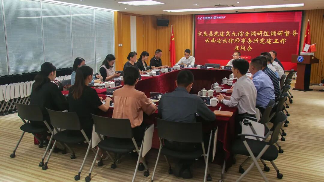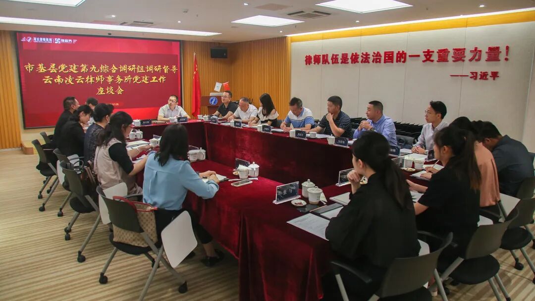 7月8日,昆明市基层党建第九综合调研组组长、昆明幼儿师范高等专科学校党委副书记董苹带领调研组一行到凌云律师事务所昆明办公室调研指导基层党建工作。昆明市律师行业党委书记、昆明市司法局副局长李继华,昆明市律师行业党委副书记、昆明市司法局律师工作管理处副处长吴绍荣等陪同调研。