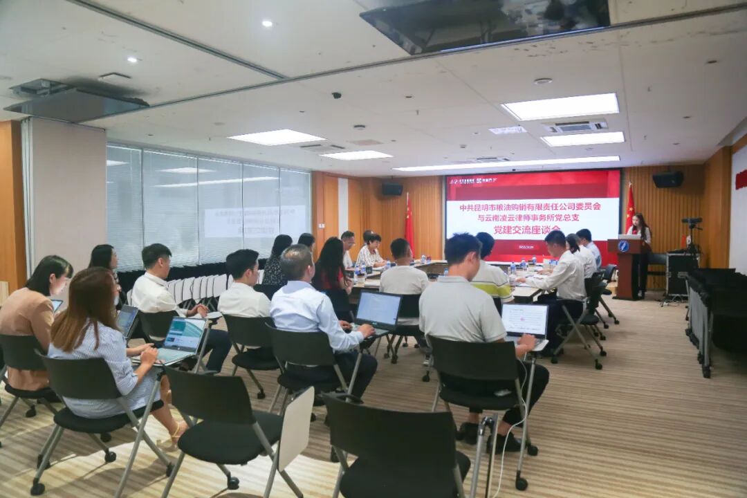 2022年8月9日,中共昆明市粮油购销有限责任公司委员会黄静一行八人莅临云南凌云律师事务所参观、指导,并开展党建交流座谈会。