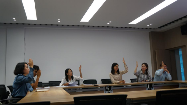 在场的党员举手表决通过了党员大会选举办法(草案)。