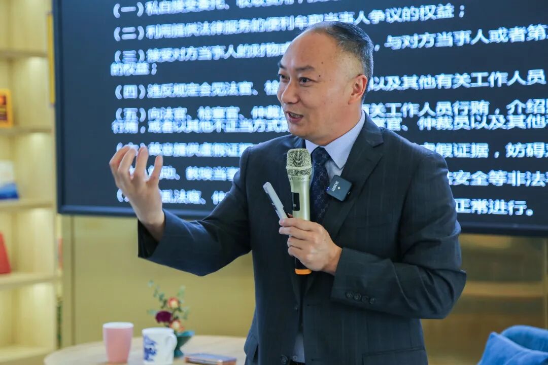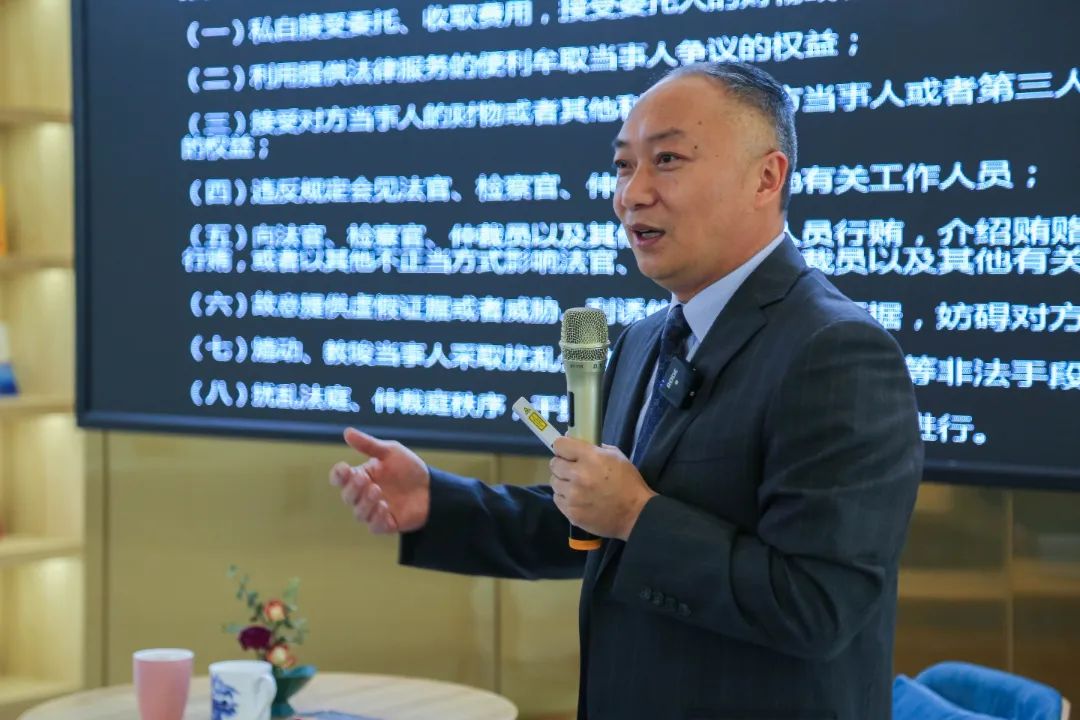 分享会上,耿国平律师结合自身丰富的行业经验给凌云青年律师带来题为《劳模是怎样练成的——律师合规执业浅谈》的主题分享。围绕“严管”和“厚爱”两大关键词,耿国平律师通过律师执业规范法律文件的解读、经典案例的分享、时事热点案例分析三个方面,详细讲解了律师职业道德和执业纪律的重要性。