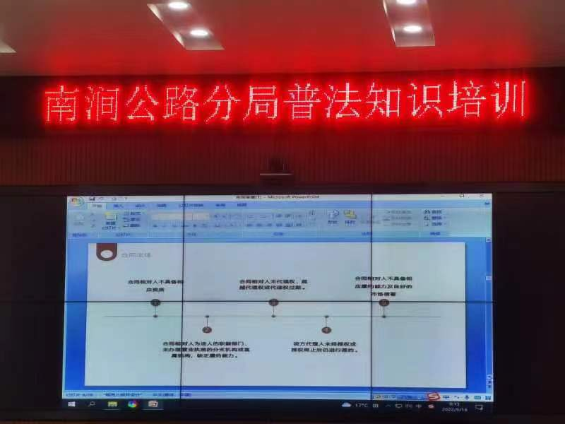 为提升民众法律意识,营造良好的“学法、懂法、用法”法治氛围,进一步提高依法办事促和谐的能力,9月16日下午,南涧公路分局组织干部职工50人开展“普法知识教育培训”。凌云大理所副主任李学清律师受邀到场授课。