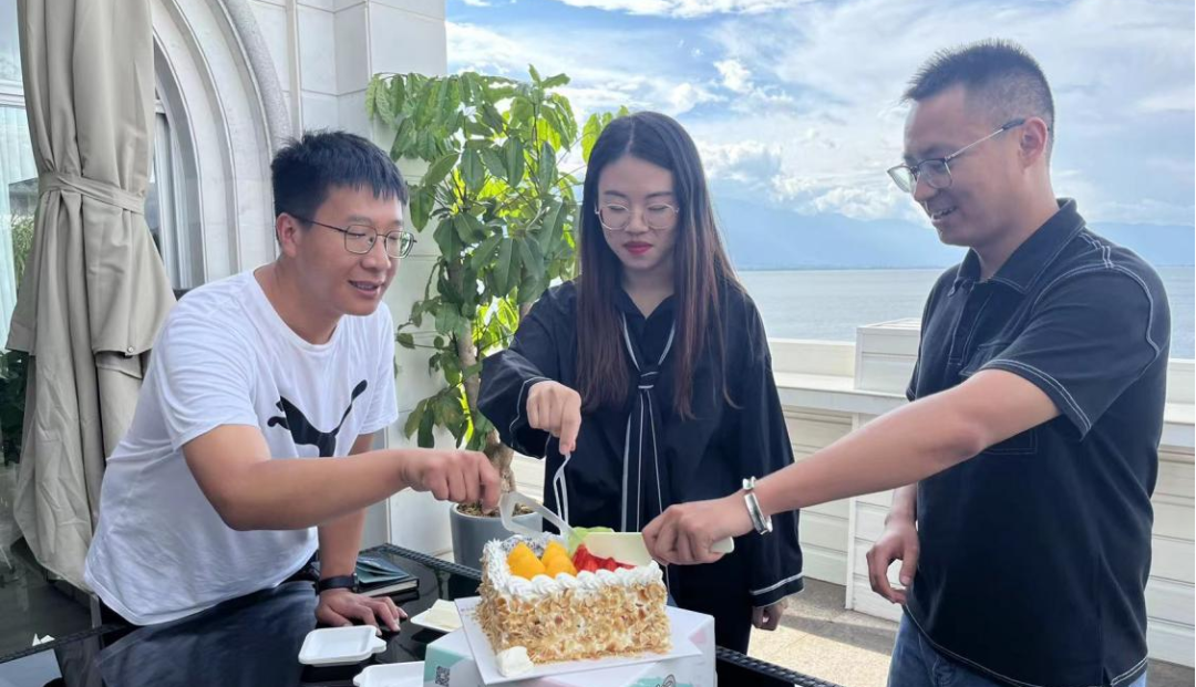 大家送上祝福,分享他们的快乐,今天是他们的节日,也是我们团队的节日。让我们快乐工作,心中有梦,齐心协力,开创未来。