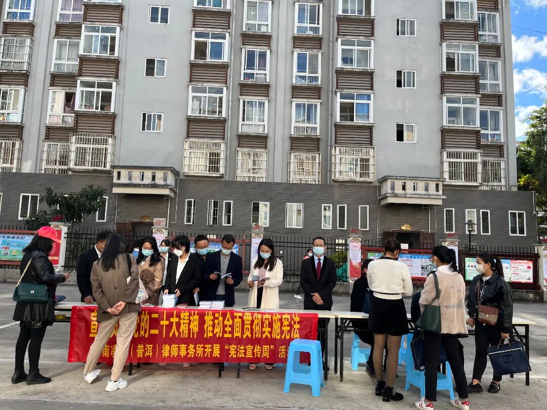 2022年12月4日是第9个国家宪法日,也是我国现行宪法公布施行40周年。为进一步弘扬宪法精神,树立宪法权威,增强全民守法用法意识,2022年12月8日,普洱市人大和凌云(普洱)律师事务所联合在兰花社区开展以“学习宣传贯彻党的二十大精神,推动全面贯彻实施宪法”为主题的宪法宣传周活动。