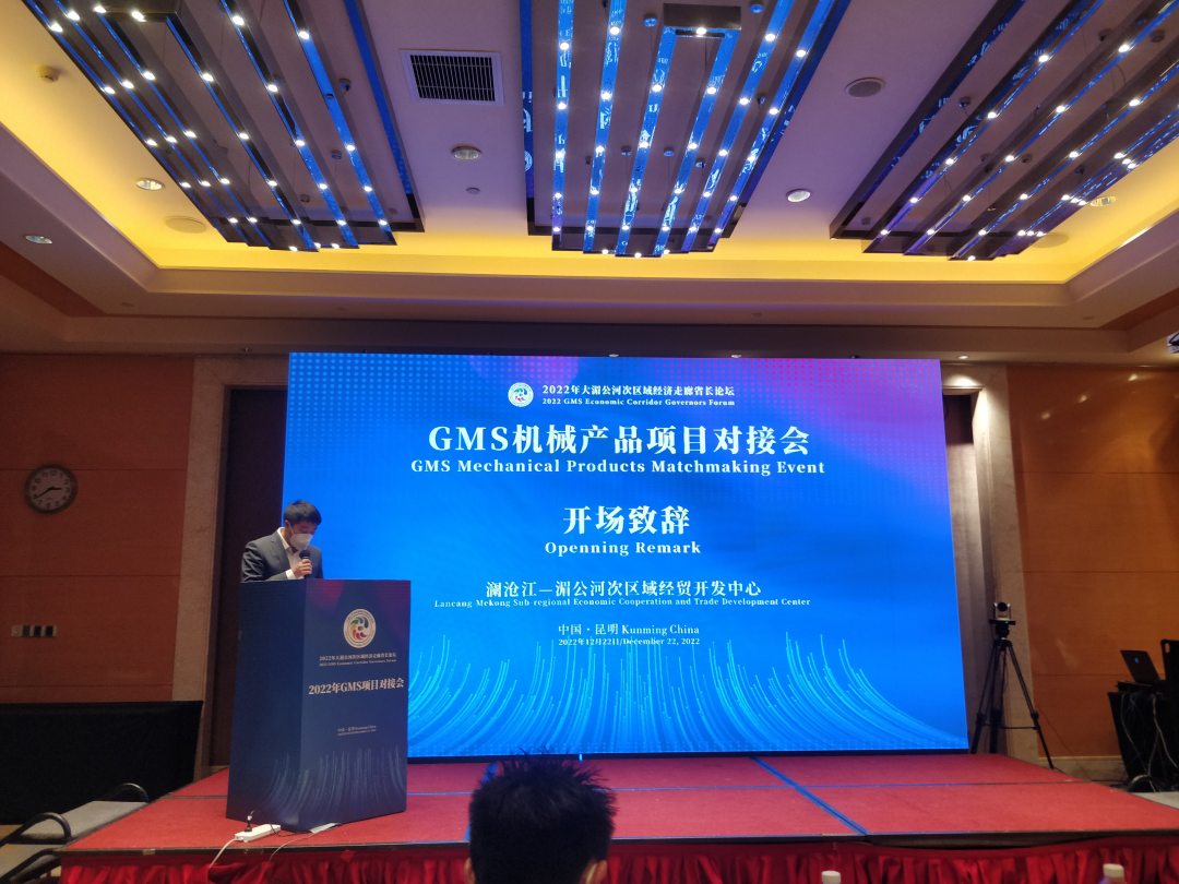 2022年12月22日,由云南省商务厅主办,澜沧江-湄公河次区域经贸开发中心承办,云南省驻柬埔寨、泰国、老挝、缅甸、越南五国的商务代表处协办的“2022年大湄公河次区域经济走廊省长论坛(GMS论坛)机械产品项目对接会”在昆明以线上、线下同步的方式举行。