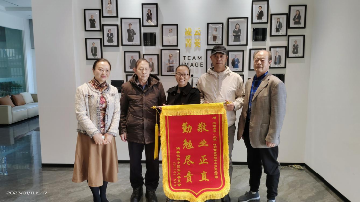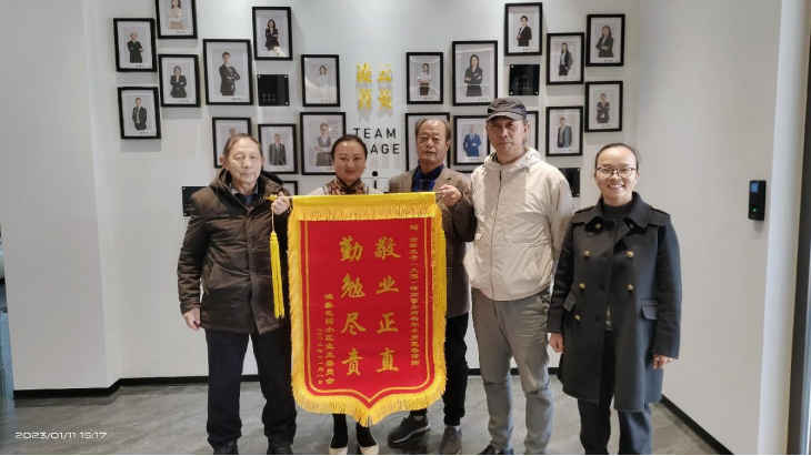 1月11日下午,凌云(大理)律师事务所杨年丰、罗慧春律师收到当事人鸿泰花园小区业主委员会代表送来的印有“敬业正直 勤勉尽责”的锦旗,当事人对杨年丰、罗慧春律师在案件处理过程中所表现出的专业水平及敬业精神表示高度赞扬。