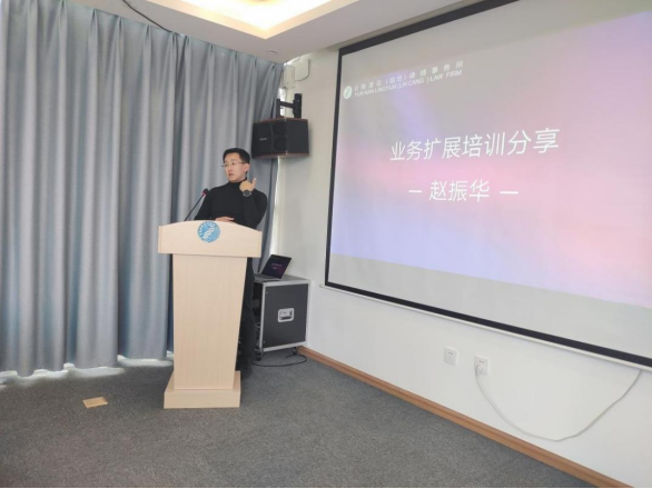 ▲凌云(临沧)律师事务所业务委员会主任赵振华就“业务拓展的方法与技巧”进行分享交流。