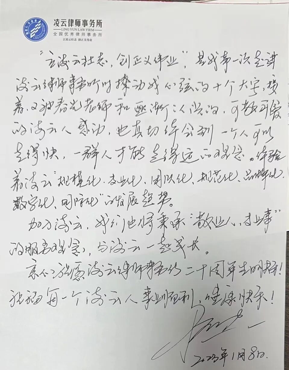 砥砺深耕二十载 笃行致远创未来 | 凌云律师机构二十周年庆典回顾篇——《一封家书·贰》
