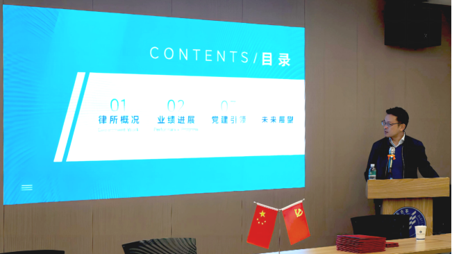 会议首先由李亚丹书记进行2022年党建工作总结,她回顾了2022年律所党支部从无到有的建设历程,从支部概况、党建发展、规范建设、存在问题四个方面进行了总结汇报。