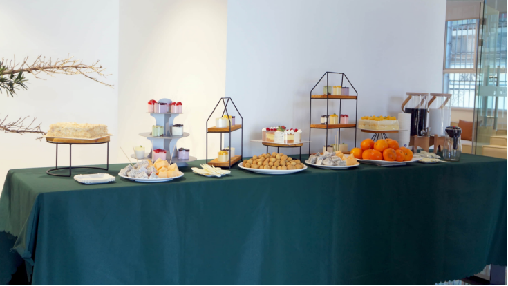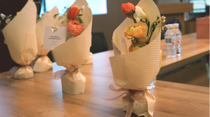 会场准备了精致的茶点和捧花,装点属于女性节日的温馨和浪漫。