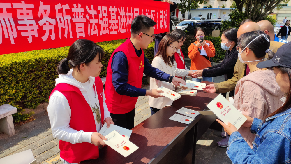 宣讲结束后,两位律师在居委会广场为群众解答日常生活中遇到的法律问题,普及法律知识,现场向群众发放普法宣传材料。