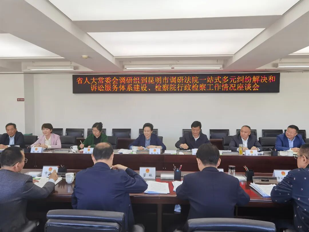为深入践行习近平法治思想,贯彻落实《关于加强诉源治理推动矛盾纠纷源头化解的意见》,省人大监察司法委受省人大常委会的委托到昆明市进行调研。