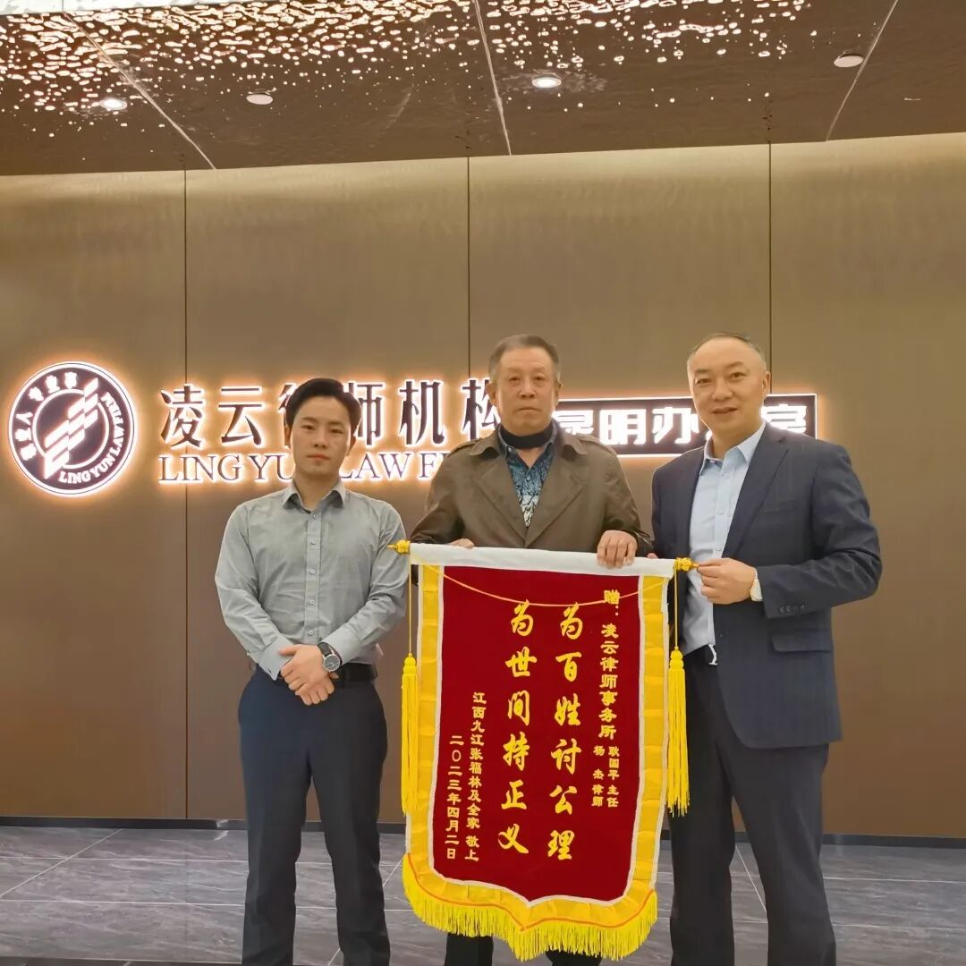 2023年4月12日,张某的父亲为感谢承办律师,特到云南凌云律师事务所为耿国平律师、杨杰律师赠送锦旗。
