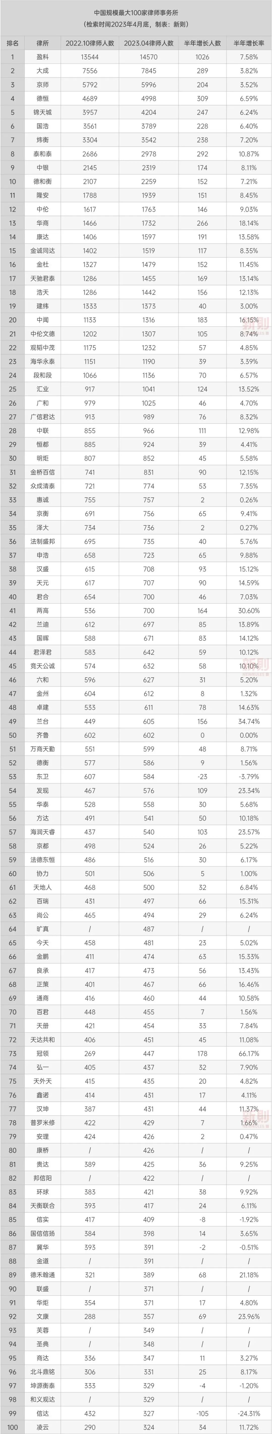 根据新则数据报道,凌云律师事务所正式成为中国规模最大的前100家律所。