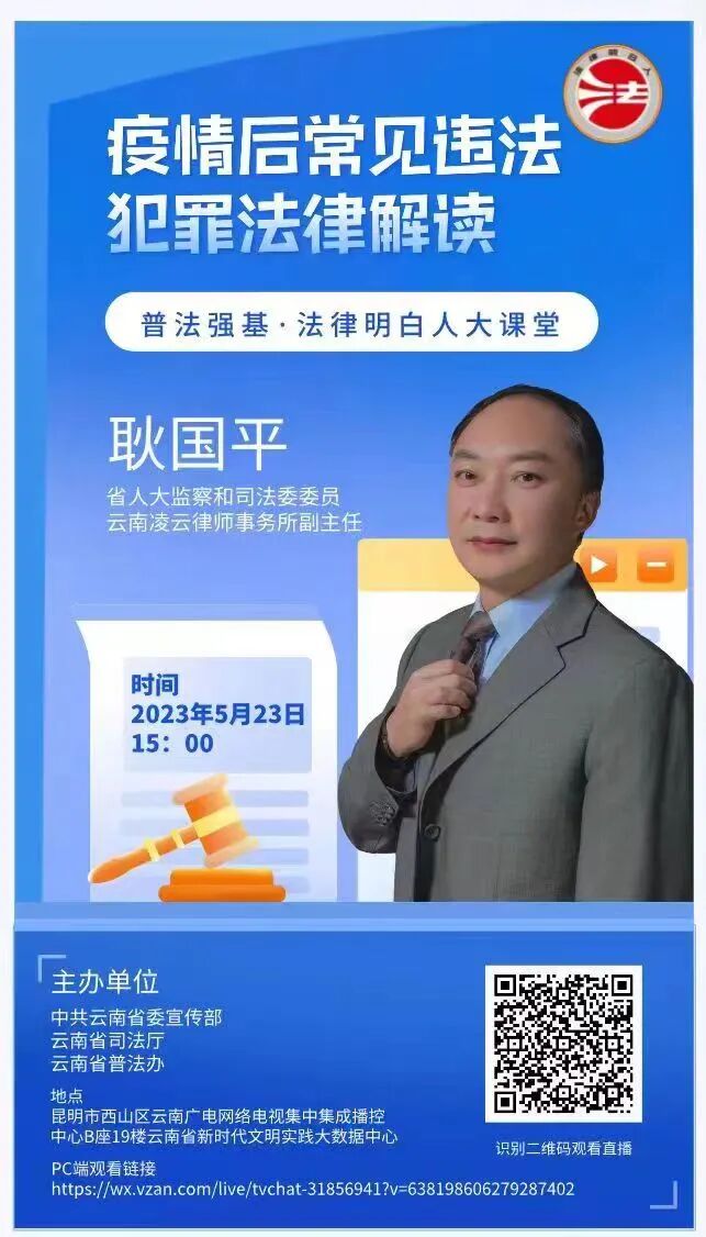 凌云资讯 | 我所耿国平主任受中共云南省委宣传部、云南省司法厅、云南省普法办之邀开展“普法强基.法律明白人大课堂”第三讲普法培训