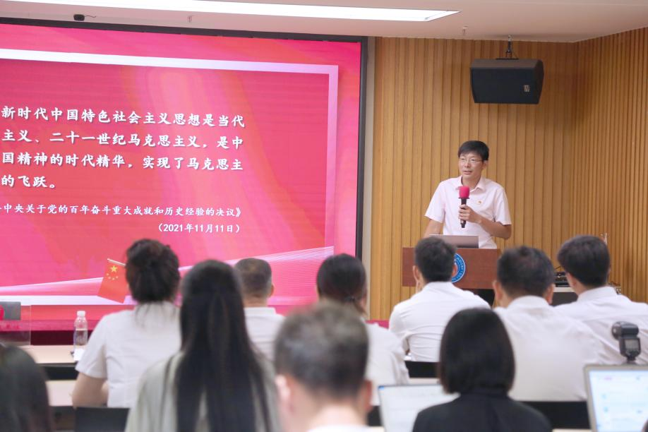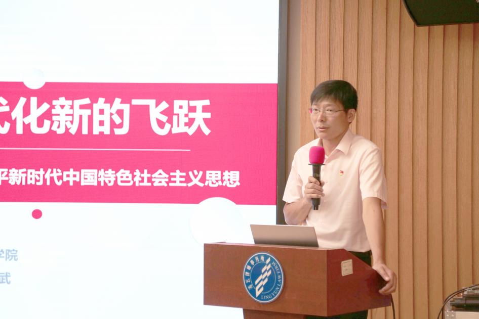 为学习贯彻党的二十大精神,全面落实“四个全面”战略布局,坚定贯彻党的自我革命战略思想和全面从严治党战略方针。特邀昆明学院副教授、云南省思政课骨干教师、云南省委教育工委宣讲团、共青团云南省委青年讲师团、党史学习教育昆明市委宣讲团成员缪文武教授讲授《马克思主义中国化时代化的新飞跃——深入学习贯彻习近平新时代中国特色社会主义思想》党课。