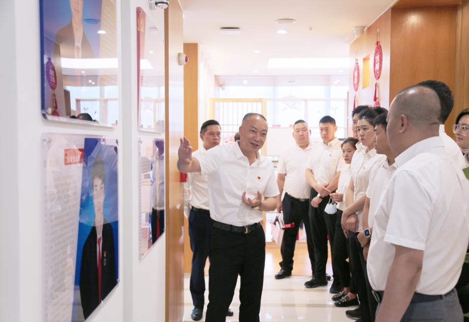 凌云党委党务负责人张福君同志带领锦康支部党员参观凌云文化墙并了解其文化内涵。