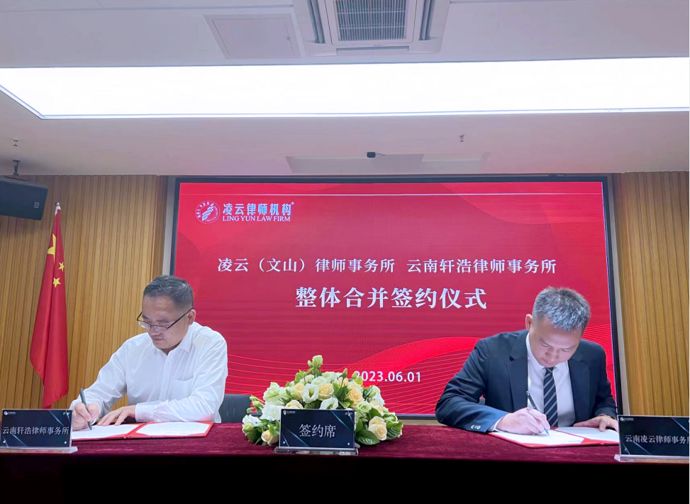 为推动行业生态优化,加速“建设区域一流强所”的战略实施,云南浩轩律师事务所与云南凌云(文山)律师事务所整体合并签约仪式于6月1日成功举行。