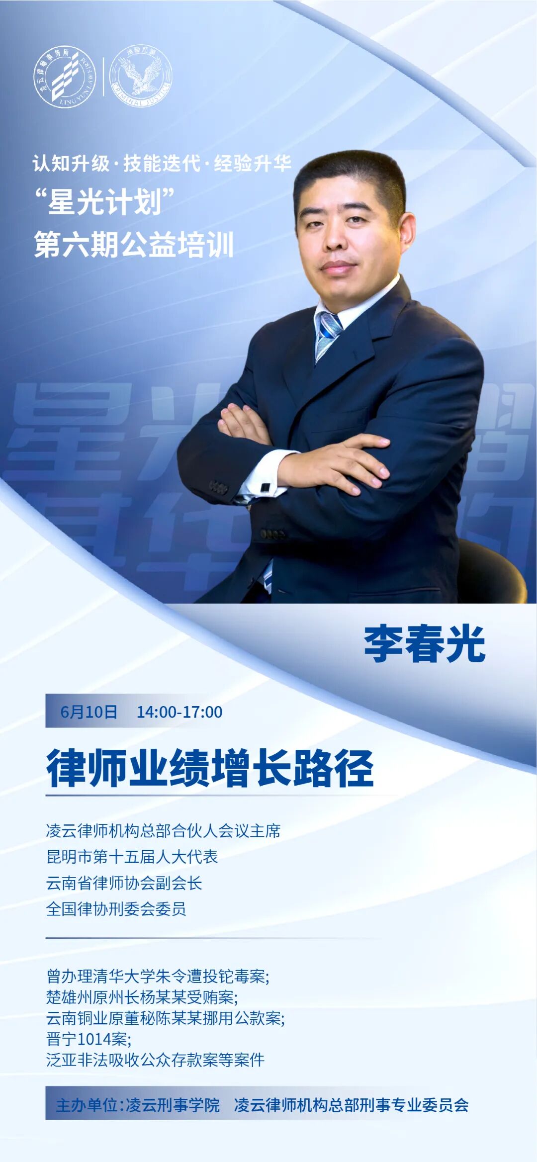 今天上午,星光计划第六期第一堂课,是来自北京德恒 (昆明)律师事务所的资深合伙人杨曦律师为学员们带来的《精准化量刑在刑事辩护中的运用》。