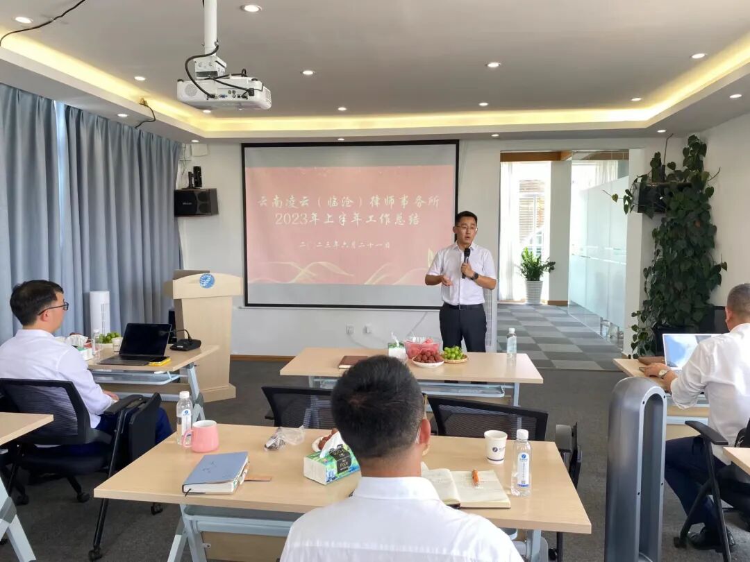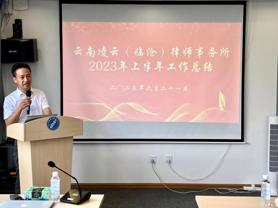 2023年6月21日,云南凌云(临沧)律师事务所在凌云雅筑召开以“总结交流树品质,强化学习创未来”为主题的2023年中总结会议。会议由朱盛军主任主持,全体律师参会,并特邀凌云总所党兴成律师做分享。