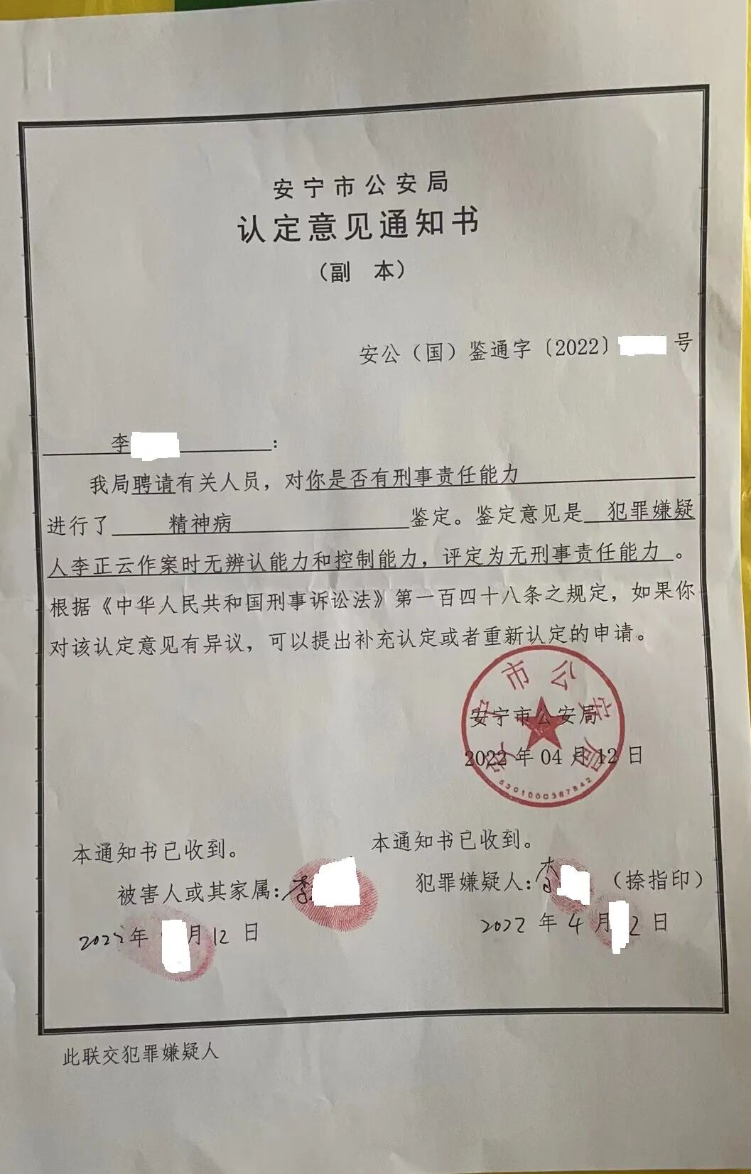 在准备相关材料后,笔者多次向办案机关反映李某云的智力障碍问题,并要求对李某云启动司法精神疾病鉴定。经鉴定李某云无刑事责任能力,并被无罪释放。